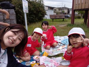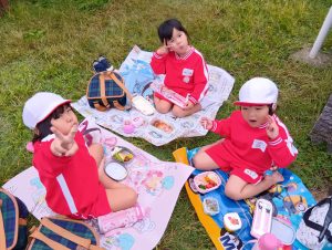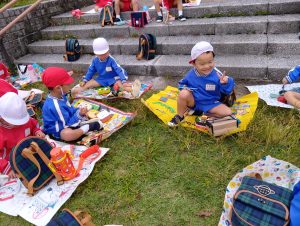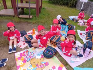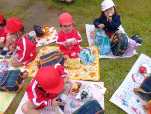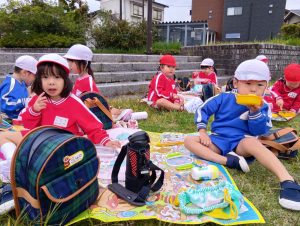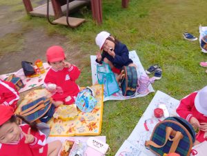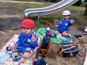 食べ終えた後は、お弁当箱やレジャーシートを自分で折りたたんで片づけたりと一つ一つやってみようとする子ども達に成長を感じました💕