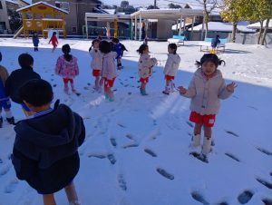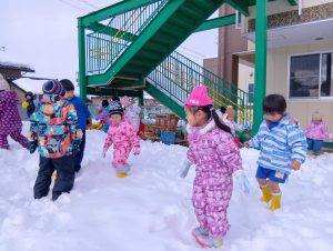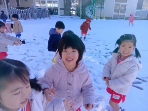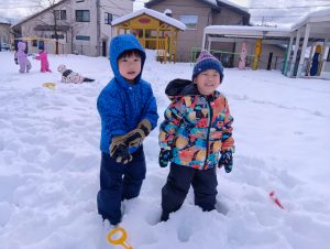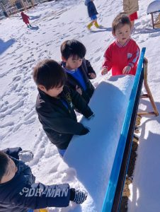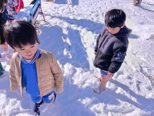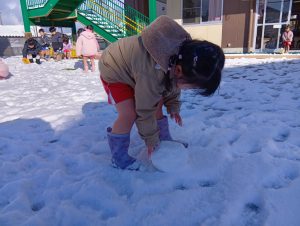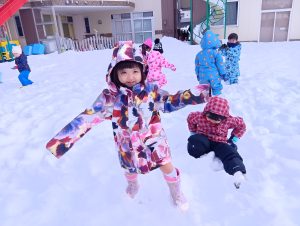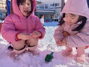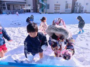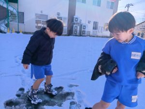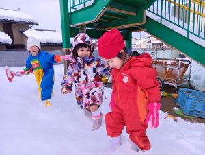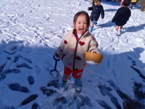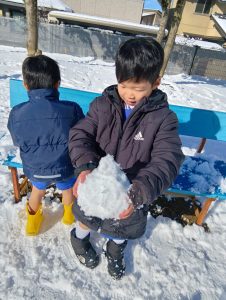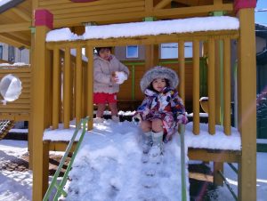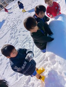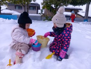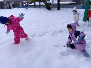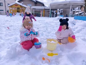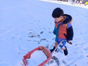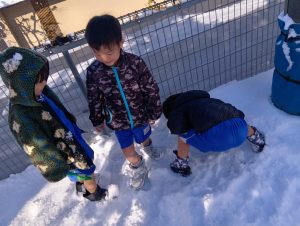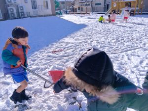 自分たちで雪だるまを作ったり、雪かきをしたり…