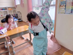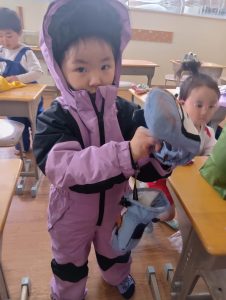 スキーウェアも自分たちで「まずやってみよう」という気持ちでやってもらうとみんな上手に着ることが出来ていました♪