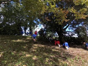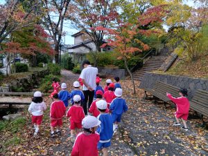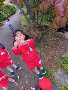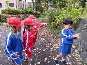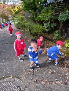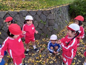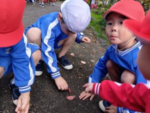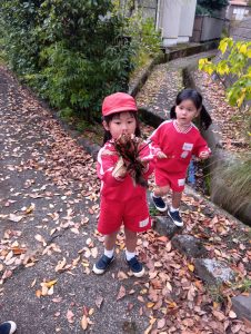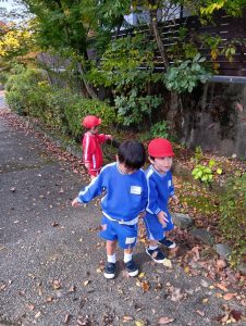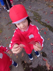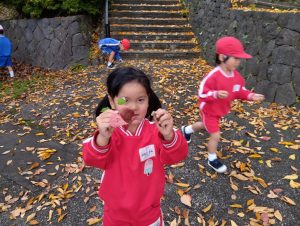 「ほら赤い葉っぱ!」「きいろいはっぱもあるよ!」
