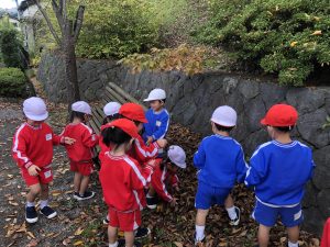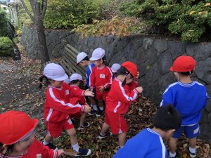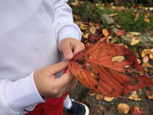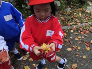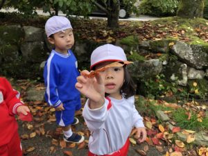 「ほら赤い葉っぱ!」「きいろいはっぱもあるよ!」