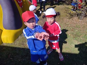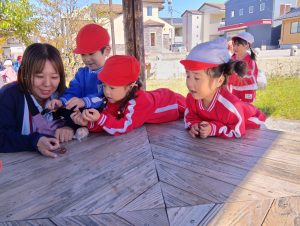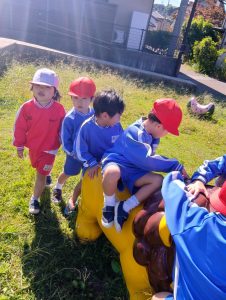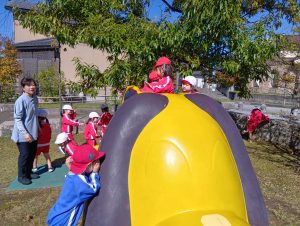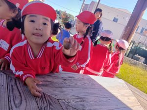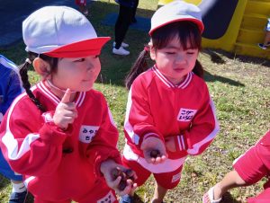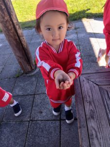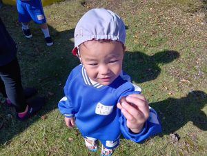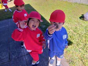 大きなどんぐりが沢山落ちていてまるで宝探しかのようにみんな夢中になって拾い集めていました😊