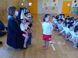 そして、「今日は誰の誕生日ー?」とお祝いするお友達もワクワク💕お誕生会を経験した子から「大きな声でお名前言うんだよ!」とアドバイスをする声が・・(笑) 経験したお友達は一生懸命伝えていました😊💕