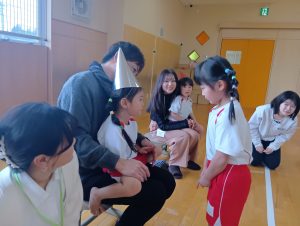 祝ってくれるお友達はどんな姿でお祝いをしたらいいのか誕生日会前に確認するのですが、「お話ししてるときは前を向くー!」「マットからおりない!」と誕生日のお友達が喜ぶような姿を考えてお約束を守り、元気よく歌ったり、質問をしてくれていました👏♥️