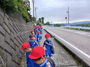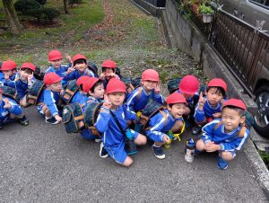 「だっこ〜」と言う子は誰一人としておらず、幼稚園目指して歩きます。