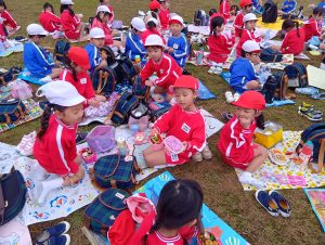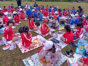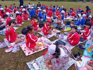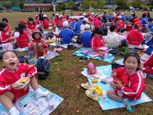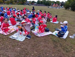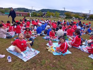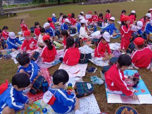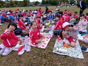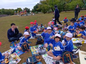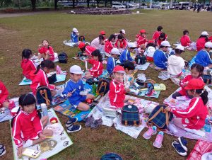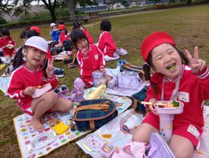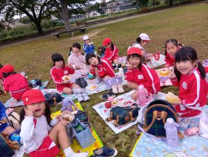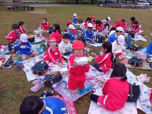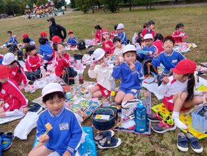 年中組と年長組で、お弁当を持ってぐるぐる公園まで歩いて行きました!