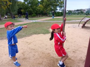 公園には他の園の子どもたちも遊んでいましたが、しっかり順番を守って仲良く遊ぶことができましたよ(*´ω`*)
