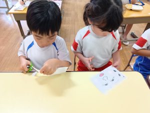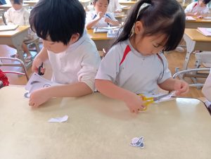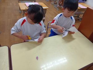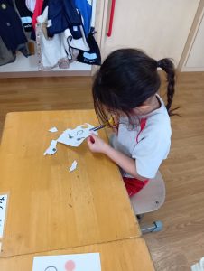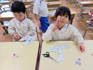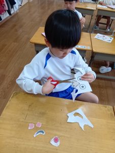 ハサミの使い方がとっても上手になったので、子どもたちに全てのパーツを切ってもらいました!!