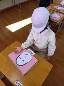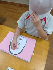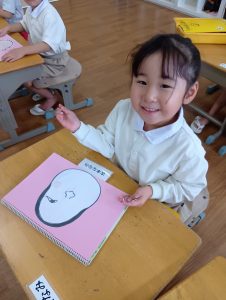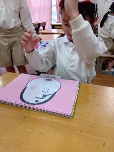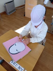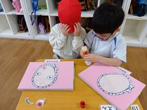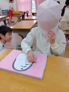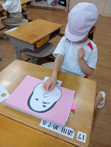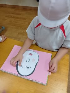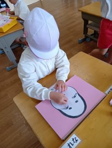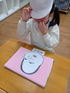 もう1人は目隠しをして福笑いに挑戦しました♪