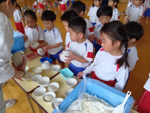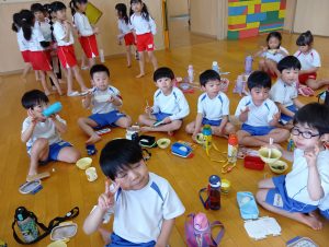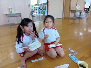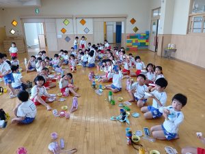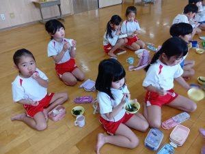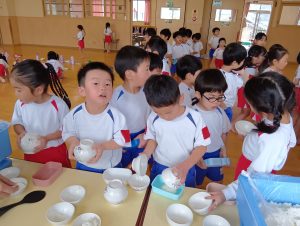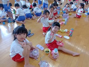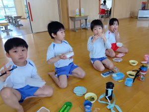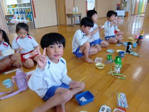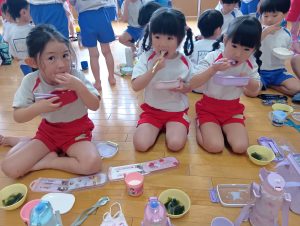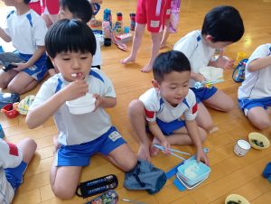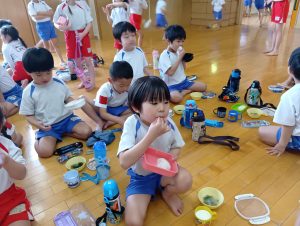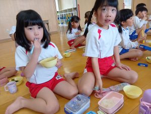 おにぎりの他にもおみそ汁とゼリーがあり、みんなすごいスピードで完食していました(*´艸`*)