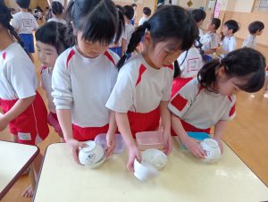 終業式の日にみんなでおにぎり作りをしました!