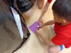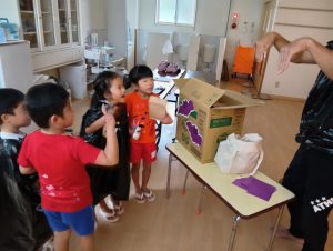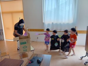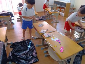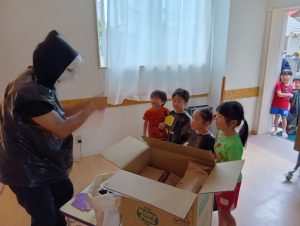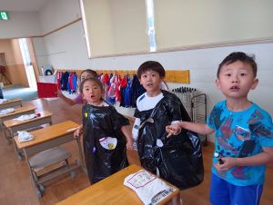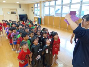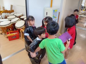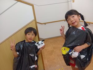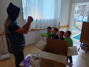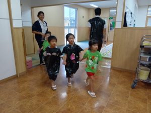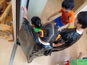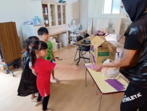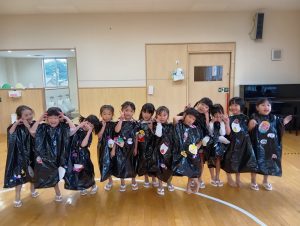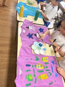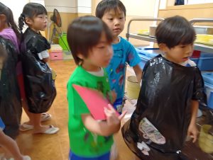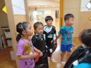 ※本日子どもたちが作ったオリジナルTシャツ・お洋服を持ち帰ります。年長組の制作は直接絵の具をTシャツに塗ってあるため、お洗濯の方はお控え頂きますよう宜しくお願いします🙇♀️