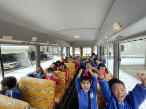 安全に出発できるか心配でしたが、なんとか出発することが出来ました☆彡雪景色を眺めながら子ども達は楽しそうにおしゃべりをしながらバスに乗っていました!!