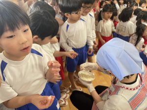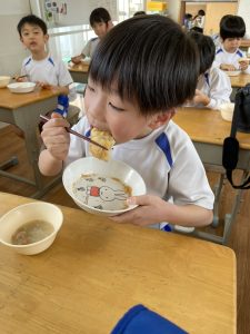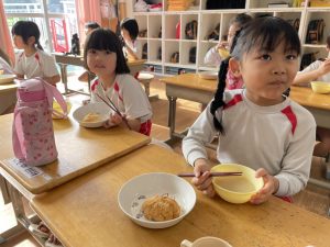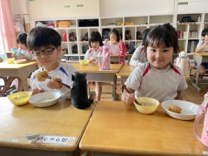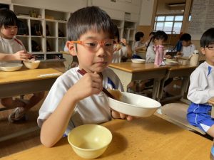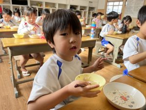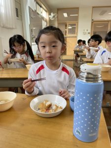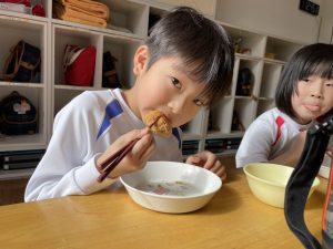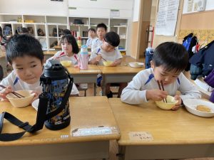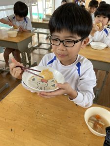「初めて食べたけどおいしい!」「もっと食べたい!」など嬉しい声もたくさん聞こえ、普段より一段と楽しい給食の時間となりました💛