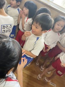 「きなこ餅だ!!」「大きくておいしそう(^^♪」など自分たちで作ったおもちが完成してとても嬉しそうな表情が見えました👀