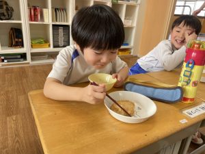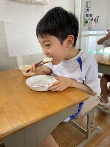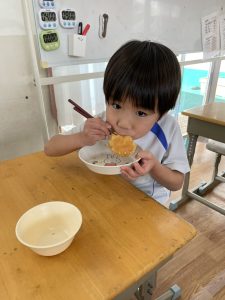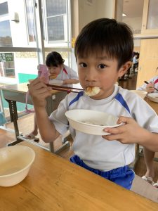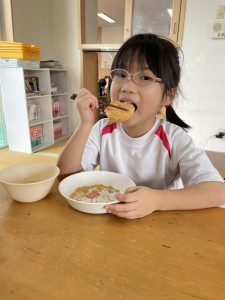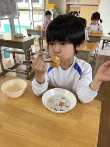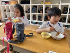 友達同士で声掛けを行いながら、しっかりと噛んで食べていましたよ!!