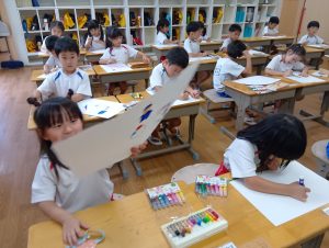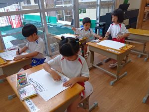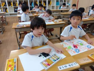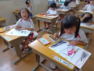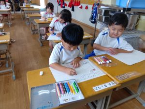 幼稚園に戻って今日の出来事を絵に描いてみました🖍️✨️