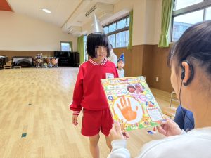 大人気の質問コーナーでは「好きな動物は?」「好きな玩具は?」「好きな給食は?」「好きな恐竜は?」など毎回違う質問が出てきてみんな楽しそうな表情をしていました!!