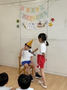年長組からは、元気な歌のプレゼント♬今月もにぎやかで楽しいお誕生日会となりました!!