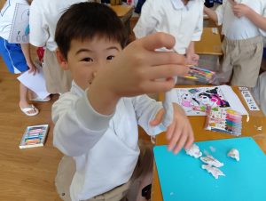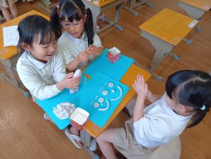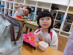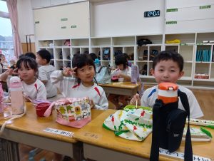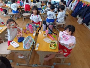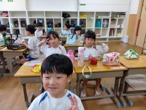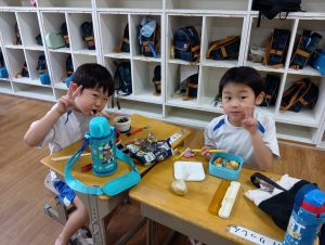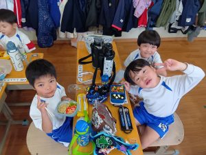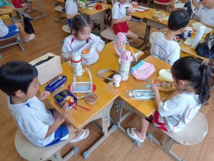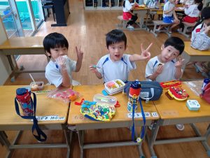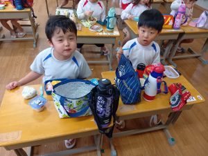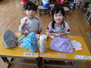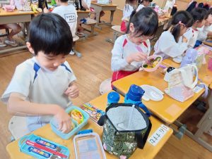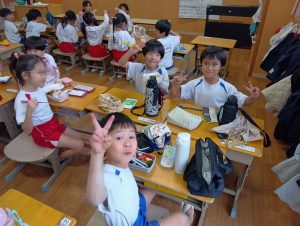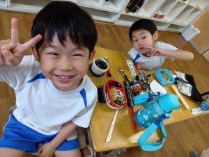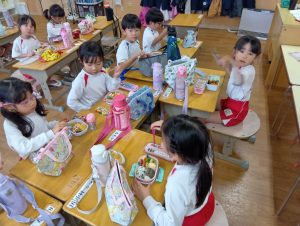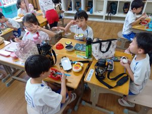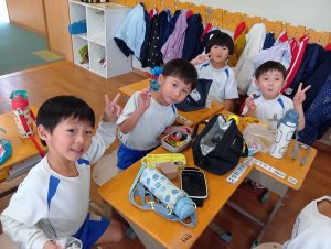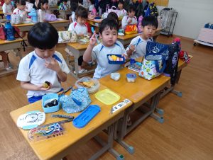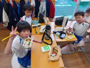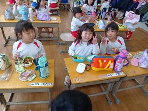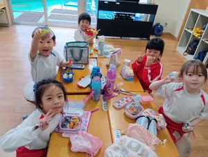 子どもたちは、朝から楽しみにしており「もうお弁当たべたい!!」「先生きゅうしょくまだ??」などワクワクしている子どもたちでした♪