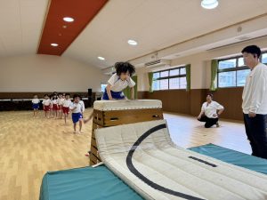 ふわふわした雰囲気で体操をしていて何度も先生から
