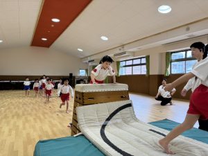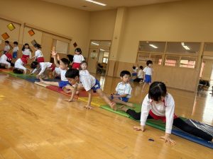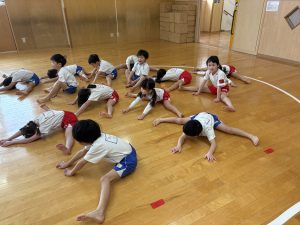 ただ体操を覚えるのではなく、音楽に合わせて心も一つにしながら取り組む姿があります。