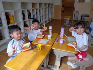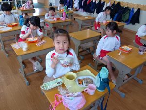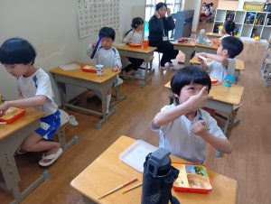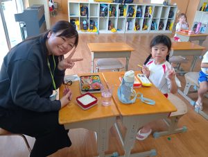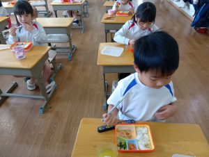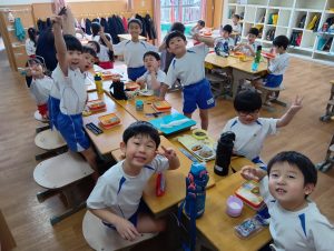 お誕生会の後は、みんなで給食をいただきました。お友だちと楽しくお話をしながら、嬉しそうに食べる子どもたちの姿が見られました😋