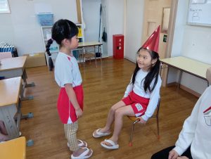 「好きな虫は何ですか?」「好きな人は誰ですか?」「好きな玩具は何ですか?」など、たくさんの質問が出ました。少し照れながらも、嬉しそうに答えるお誕生日のお友だちの姿がとても可愛らしかったです☺️