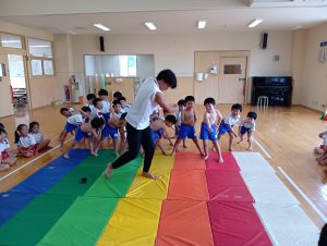 写真はありませんが2回目では年長組男の子全員が体操服を脱いで、気持ちの強さを年中組にアピールする一幕もありました!!!!